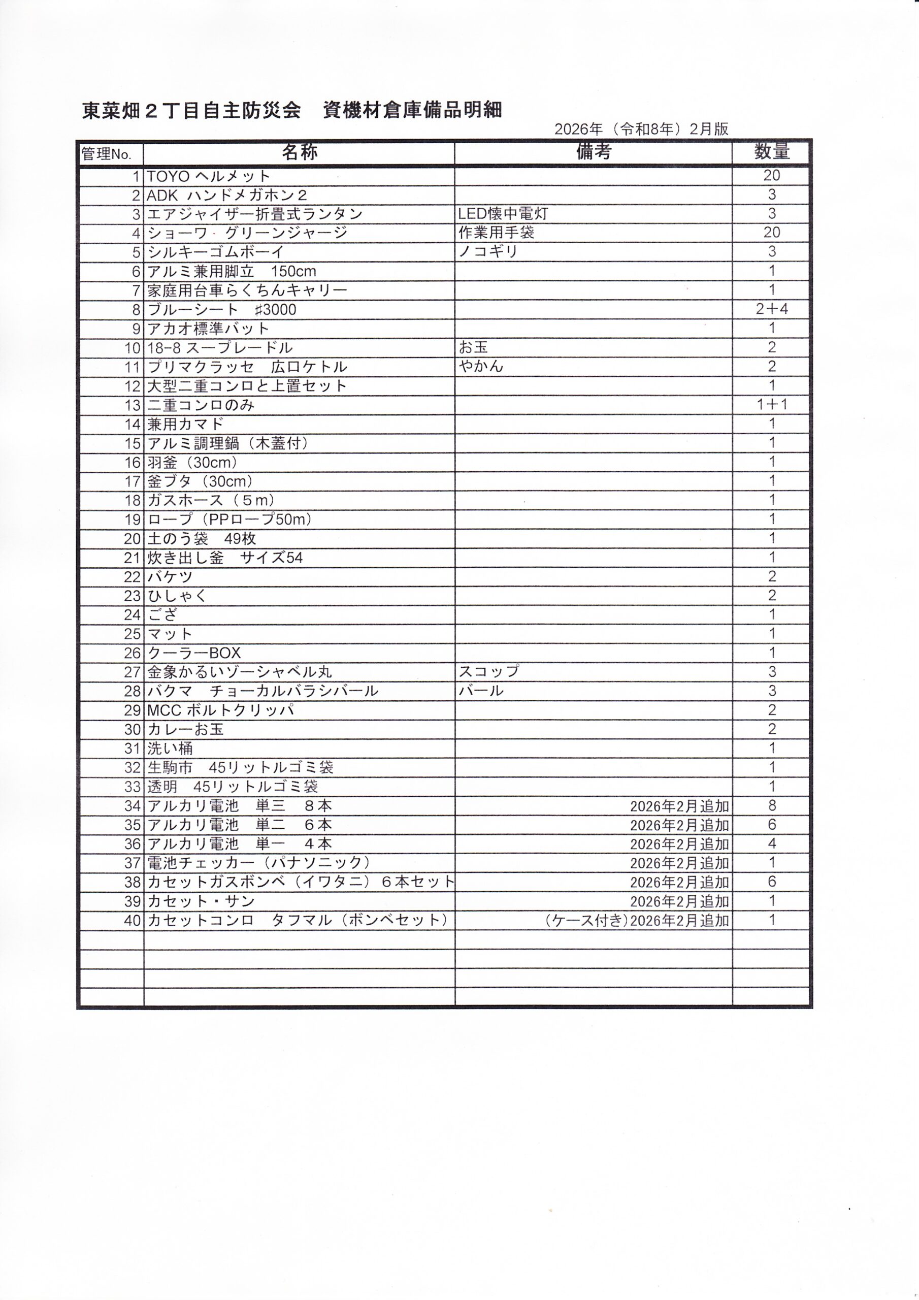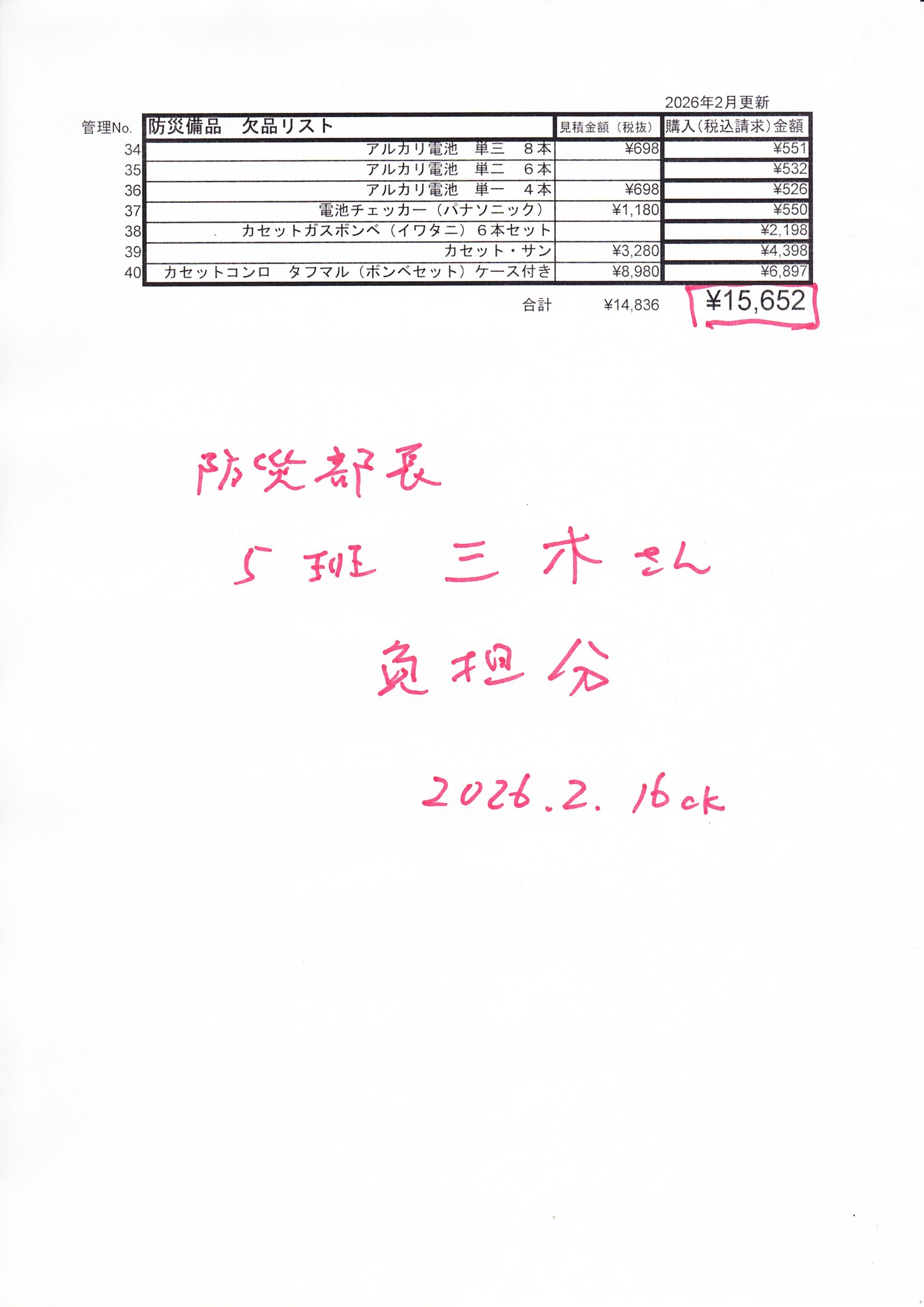 【2026.02.16】防災倉庫欠品補充と請求